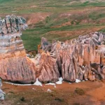 Nos adentramos a un lugar místico y surreal: enormes formaciones de roca erosionadas por el viento y el tiempo que parecen representar castillos, torres, animales y figuras humanas. Es por ello que los locales la llaman “la ciudad encantada”.