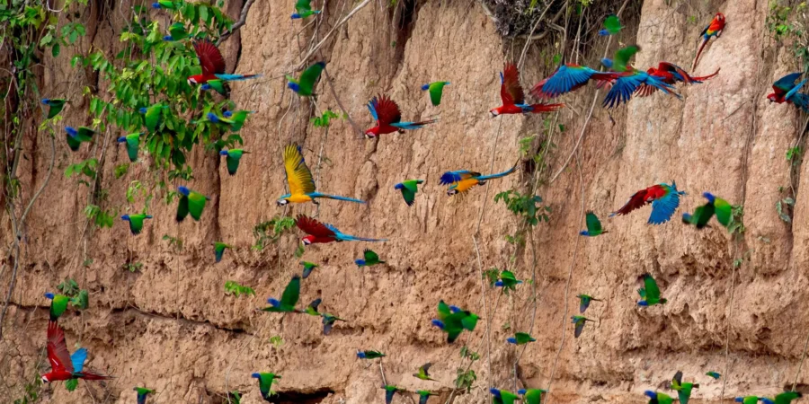 Décadas después, biólogos y naturalistas iniciaron estudios para comprender mejor este comportamiento. Así nació el interés científico por la zona. Con el tiempo, la Collpa Colorado se convirtió en un punto clave para la conservación. La creación del Tambopata Research Center impulsó investigaciones y ayudó a proteger la vida silvestre del Alto Tambopata. Hoy, este acantilado es una de las collpas más grandes y estudiadas de Sudamérica.