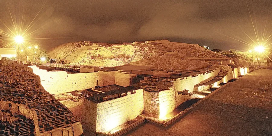 Los visitantes recorren los patios, escaleras y recintos ceremoniales mientras los guías relatan la historia de la cultura Lima y los rituales que allí se realizaban. El contraste entre las luces modernas y las sombras del pasado crea un ambiente perfecto para quienes buscan una experiencia diferente.