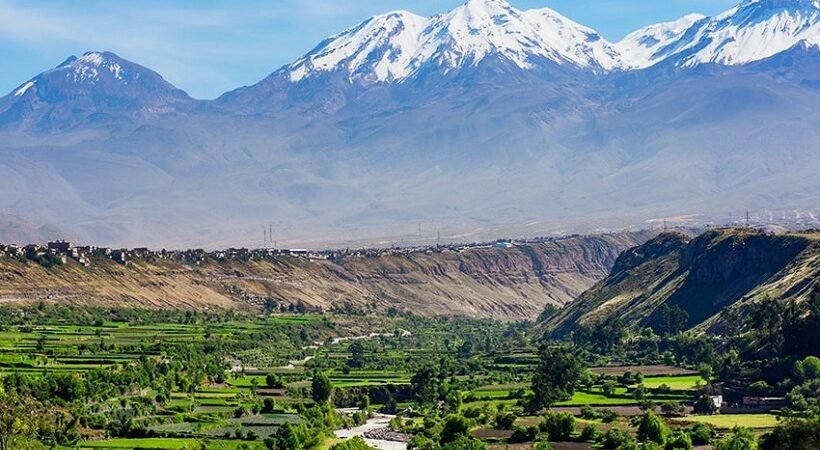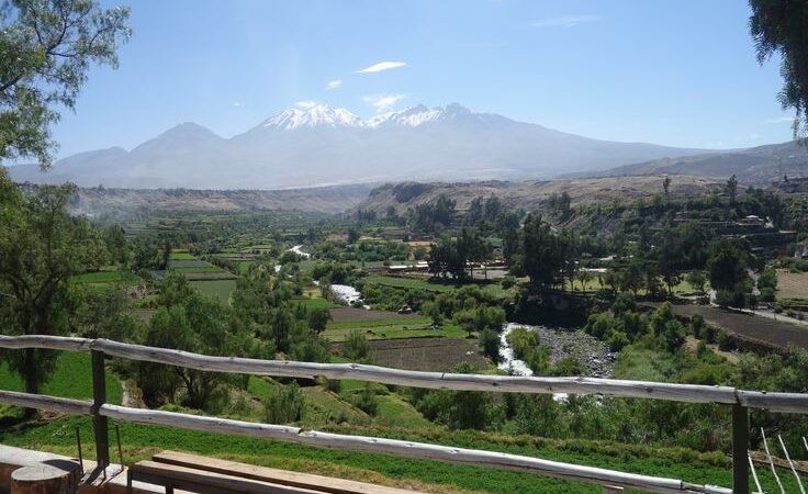 El Mirador de Carmen Alto es uno de los escenarios naturales más cautivadores de Arequipa. Ubicado en el tradicional distrito de Cayma, este lugar muestra una imagen auténtica de la campiña arequipeña: antiguos andenes que se despliegan como escaleras verdes sobre las laderas del valle, el río Chili serpenteando entre cultivos y la presencia dominante de los volcanes Misti, Chachani y Pichu Pichu, que parecen guardianes eternos de la ciudad.