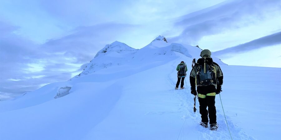 Las expediciones de alta montaña suelen establecer un campamento en la morrena, alrededor de los 4.800 o 4.900 metros. Desde ese punto se inicia el ataque a la cumbre durante la madrugada, atravesando glaciares, pendientes pronunciadas y secciones de hielo técnico.