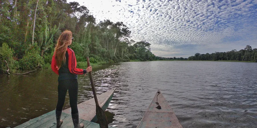 Paseos en canoa: Navegar por el río Madre de Dios y el Lago Sandoval es una de las experiencias más emocionantes para explorar la selva de cerca.