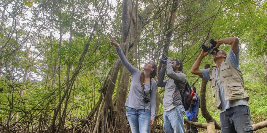 Los humedales de Tingana son el corazón del destino. Aquí el bosque permanece inundado durante gran parte del año, lo que crea un paisaje único. En este entorno, los árboles desarrollan raíces fuertes para resistir el agua. Además, el silencio del bote permite escuchar aves, insectos y el movimiento de los monos en las copas. Garzas, loros, martines pescadores, perezosos e iguanas son algunas de las especies que se pueden observar. Mientras avanzas, el agua refleja el bosque, creando una imagen que muchos viajeros describen como hipnótica.