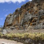 Una opción alternativa es tomar transporte público hacia Otuzco o Combayo. Las combis llevan al visitante hasta un punto cercano al caserío; desde allí se realiza una caminata sencilla que dura entre 10 y 20 minutos por senderos rurales rodeados de pastizales y pequeños cultivos. El paisaje es parte fundamental de la experiencia, pues permite entender cómo este territorio fue ocupado por culturas antiguas que aprovecharon la roca volcánica y la topografía natural para construir sus cementerios y espacios sagrados.