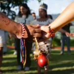 Danza o música tradicional, con tambores, flautas y cantos ancestrales.