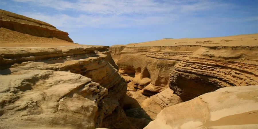 El Cañón de los Perdidos es una joya natural escondida en el corazón del desierto de Ocucaje, en la región de Ica. Este impresionante cañón, formado por la erosión del viento y el agua a lo largo de millones de años, es un destino que combina aventura, geología y paisajes únicos. Con paredes que superan los 100 metros de altura, miradores naturales y un ambiente de total tranquilidad, es el lugar perfecto para quienes buscan explorar un rincón poco conocido del Perú.