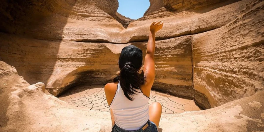 Al llegar al Cañón de los Perdidos, comenzaremos un recorrido a pie descendiendo hacia su interior. Aquí, la naturaleza despliega su obra maestra: paredes de roca que alcanzan más de 100 metros de altura, formadas por capas sedimentarias que cuentan la historia geológica de miles de años. El guía explicará cómo el paso del tiempo, el viento y el agua han moldeado este lugar, creando curvas, grietas y túneles naturales.